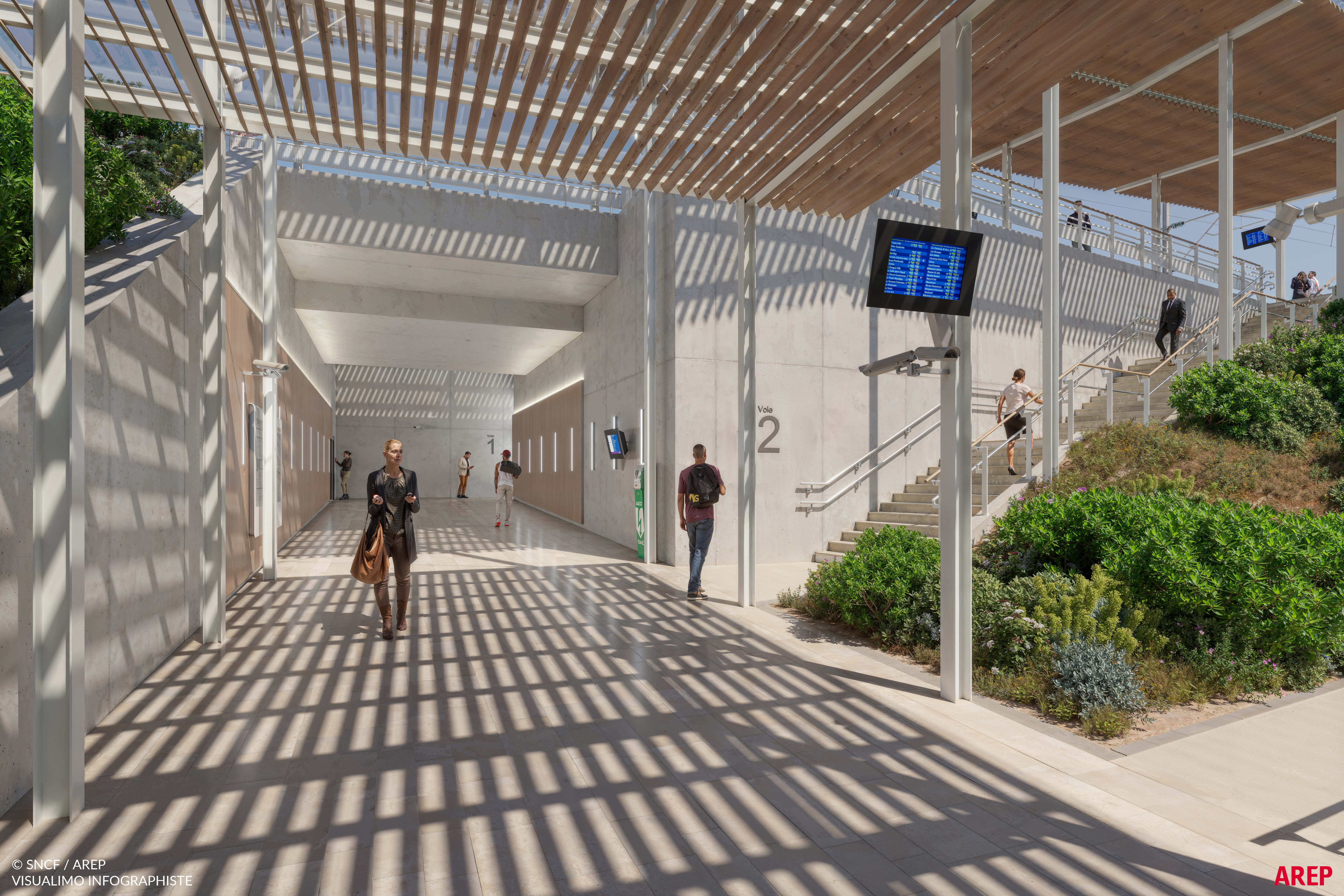 La future halte Saint-André a été pensée pour s’intégrer harmonieusement à son environnement. Elle sera éco-conçue, avec un aménagement des espaces extérieurs et de la halte limitant les effets d’ilots de chaleur et une gestion paysagère des eaux pluviales.